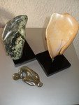 - beelden van speksteen, tekeningen en acryl schilderijen